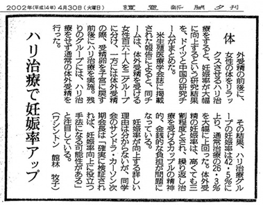 その結果、ハリ治療グループの妊娠率は42.5%に上り、通常治療の26.3%を大幅に上回った。